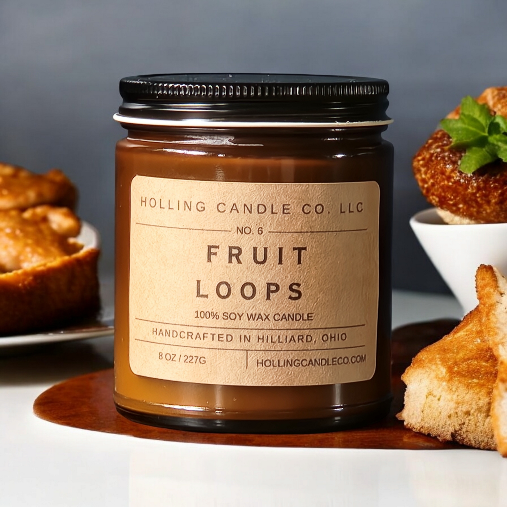 Meet "Froot Loops," an 8.0 oz soy candle that transforms your space into a nostalgic breakfast haven. As the wick is ignited, the air fills with the delightful aroma of Froot Loops cereal. Immerse yourself in the sweet and fruity scents reminiscent of childhood mornings. This soy candle captures the essence of the iconic cereal, creating a fragrant experience that's both whimsical and comforting. Let the familiar scent of "Froot Loops" evoke memories and add a touch of playful nostalgia to your surroundings.